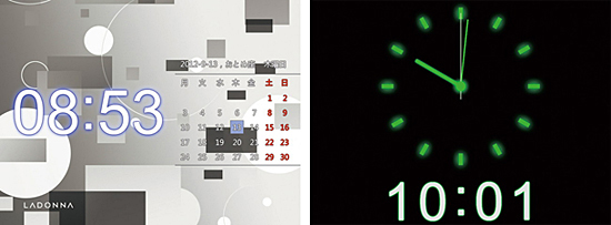 カレンダー表示(左)とクロック表示