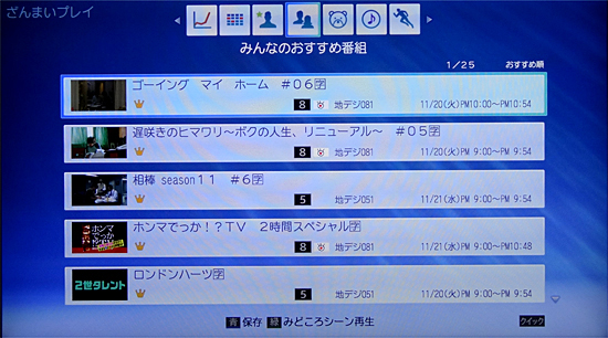 「ざんまいプレイ」の「みんなのおすすめ番組」は、東芝のレコーダーで録画している番組を集計した結果を表示する