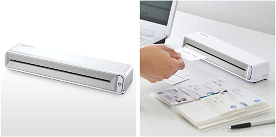 PCを使わずに、本体だけでスキャンが完結するハンディスキャナ。書類を差し込むだけで自動的にスキャンし、画像データとして保存できる。スキャンしたデータは、内蔵メモリやUSBメモリ、SDHC/SDカードへの保存に対応。解像度は300dpiと600dpiの切り替えができる。保存形式はJPG。
