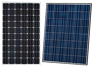 左から、サンテックパワー製、シャープ製の太陽光発電モジュール
