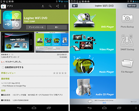 続いて、視聴用のアプリを設定する。GooglePlayかiTunesストアから専用アプリ「Logitec Wi-Fi DVD」をダウンロードしよう。