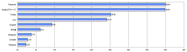 調査は、12月17~18日、全国の20~39歳の男女を対象にインターネットで実施した。有効回答数は1000人。SNS、ブログ、コミュニティ全般を「ソーシャルメディア」と定義すると、ソーシャルメディアの満足度は、全体でFacebookが40.0%で最も高く、わずか0.1ポイントの僅差の39.9%でAmebaが、25.2%でTwitterが続いた。今後も継続して利用したいと思うソーシャルメディアについても、Facebookが42.4%で最も多く、Amebaが42.1%、Twitterが36.7%と、満足度と同じ順位となった。AmebaはSNS機能だけではなく、ブログ、ゲーム、コミュニティなど、さまざまなサービスを提供しており、その総合力から国内発のサービスとしては最も支持を集めた。