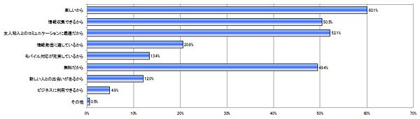 ソーシャルメディアの満足要素としては、「楽しいから」(60.1%)、「友人・知人とのコミュニケーションに最適だから」(52.1%)が挙げられた。一方、不満点は、「投稿の際、友人・知人の目を意識してしまう」(48.1%)、「非公開で相談事を打ち明けたいけどできる場がない」(28%)となり、ソーシャルメディアユーザーが多様化するにつれて要望も多様化し、状況に合わせて使い分けるユーザーが増えている。