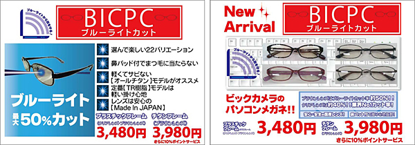 ビックカメラは、オリジナルのブルーライトカットメガネ「BIC PC」を全国19店舗の「ビックカメラ」メガネ取扱店19店舗で発売した。