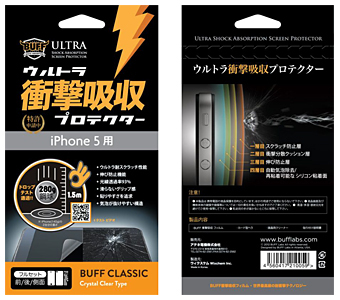 アテネ電機は、液晶画面に貼るだけで衝撃を吸収する厚さ0.25mmの保護フィルム「BUFF ウルトラ衝撃吸収プロテクター for iPhone 5フルセット」を1月25日に発売する。