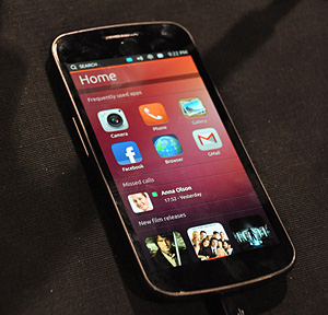 現地で見かけたスマートフォンのなかで、ひときわ珍しかったのが、iOSでもAndroidでも、そしてWindowsでもない新たなOSを搭載した「Ubuntu Phone」だ。「Ubuntu」は企業などで利用されるLinux OSの一つで、これをスマートフォン用に英Canonicalがカスタマイズしたのがこの「Ubuntu for Phones(Ubuntu Phone)」だ。