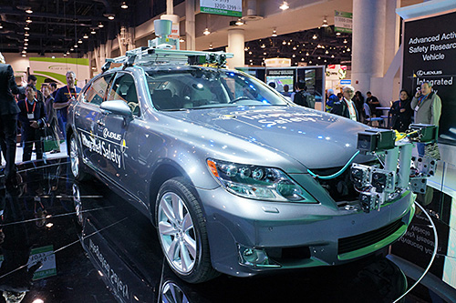このほかにも、おもしろいデジタル製品が多数並んでいた。開幕に先駆けて開催されたトヨタの「LEXUS」のプレスカンファレンスでは、自律走行車のプロトタイプが登場。車両前方や屋根の上にさまざまなセンサやカメラを装備し、周辺の物体をリアルタイムに認識することで自律走行する仕組みだ。実用化はもう少し先だが、こうした技術の蓄積がクルマの安全性を高めるとともに、新たなクルマとのつき合い方を生み出しそうだ。