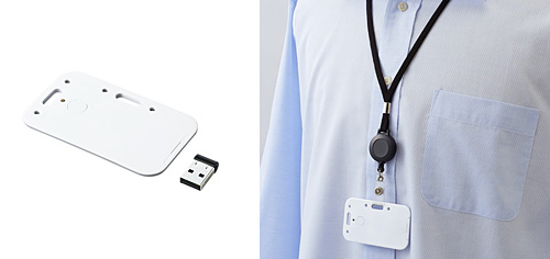 カードを吊り下げた状態でペアリングしたPCから離れると、PCを自動的にロックする。また、ペアリングしたPCに近づくと自動でロックを解除できる。ロック解除の際にパスワード入力などの必要がないので、簡単にPCの不正利用を防ぐことができる。