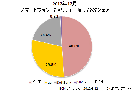 2012年12月&年間の携帯電話ランキング、iPhoneが圧倒的シェアでトップ
