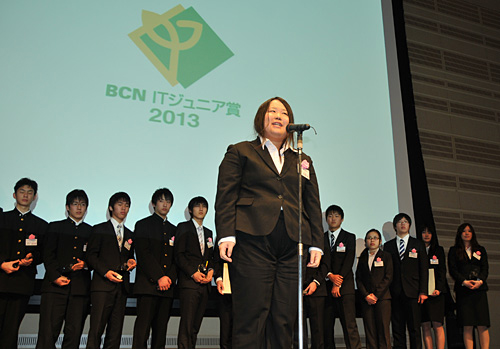 「BCN ITジュニア賞 2013」受賞者を代表して、弓削商船高等専門学校の岩本華代子さんは、「IT技術を学ぶ学生として、今の生活を守るだけではなく、さらに発展させることを考えたい。そのために学校で知識を身につけ、経験を積んで、柔軟な発想力を武器に日々がんばっていきたい」と述べた。