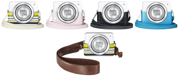 キヤノンオンラインショップ価格は、「マルチボーダーセット」「サクラパールセット」「ステッチブラックセット」「アクアブルーセット」が2万9980円、500台限定モデル「ビンテージブラウンセット」が3万2980円。それぞれ、デザインの異なるカメラジャケット・両吊りネックストラップが付属する。