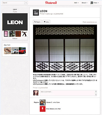写真は、2週間ごとに追加。「Pinterest」内と「LEXUS」公式サイトの特設ページには、同じ写真を掲載する。「Pinterest」に登録していない人は、「LEXUS」公式サイト内の特設ページから閲覧できる。