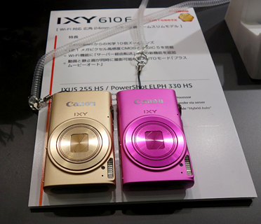 Wi-Fi機能を搭載したコンパクトデジタルカメラ「IXY 600F」の後継機「IXY 610F」もお披露目された。スタイリッシュなスリムボディに光学8倍ズームを搭載し、さまざまなシーンを自動で判別して最適な撮影を行う「こだわりオート」などを搭載する。「こだわりオート」は認識シーン数が32から58に増えたことで、より状況に合った撮影ができるようになった。