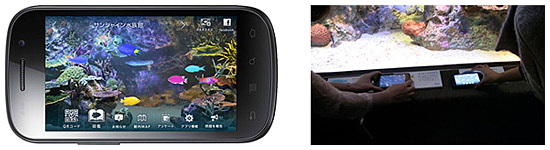 水族館の水槽脇に設置した魚名板に取り付けたNFCタグやQRコードを利用して魚の情報をスマートフォンに取り込むと、オリジナルの魚類図鑑のようになる。また、スマートフォン画面を水槽に見立てて集めた魚を泳ぎ回らせたり、水槽に「サンゴ」や「岩」などのアイテムを配置したり、水槽の様子をFacebookで友人とシェアして楽しむことができる。