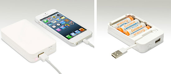4本のニッケル水素充電池を使うことでUSB 5V(最大1000mA)のハイパワー出力ができるので、iPadを充電できる。また、ニッケル水素充電池2本でもUSB5V(最大500mA)出力で、携帯電話や携帯ゲーム機を充電できる。