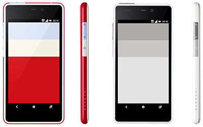 「INFOBAR」シリーズならではの配色をアルミフレームと三つのキーに採り入れ、シンプルで精緻なデザインに仕上げた。アプリやウィジェットなどをパネル化し、自由に配置することで自分だけのオリジナル画面をデザインできる。3色のカラーバリエーションのうち、まず赤を基調とした伝統の「NISHIKIGOI」、白を基調とした「ICE GRAY」を発売する。青を基調とした「AOAO」と、関東・沖縄以外の地域での発売時期は未定。