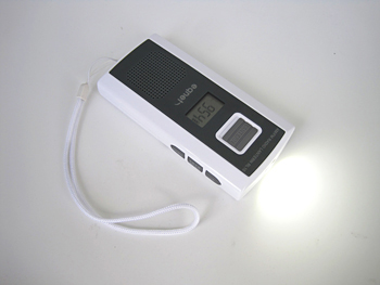 震度3以上の揺れを感知すると、自動的にラジオとLEDライトを起動。大きめの音量でラジオ放送を流して地震発生を知らせる。通常はAM/FMラジオとして利用できる。LEDライトは手動で点灯する。