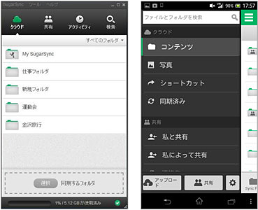 「SugarSync 2.0」のデスクトップアプリ(左)とAndroid用アプリ