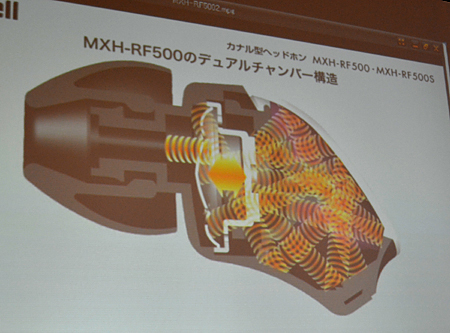 日立マクセルは、二層空間(デュアルチャンバー)設計のカナル型イヤホン「MXH-RF500」「MXH-RF500S」を2月20日に発売する。価格はオープンで、実勢価格は「MXH-RF500」が6000円前後、リモコンマイクつきの「MXH-RF500S」が7000円前後の見込み。