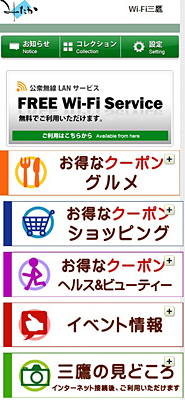 「Wi-Fi三鷹」を通して、協力店舗のクーポンを提供するほか、三鷹の見どころやイベント情報などを紹介することによって、賑わいの創出を目指す。クーポンは、2月18日時点で20店舗の協力を得ている。