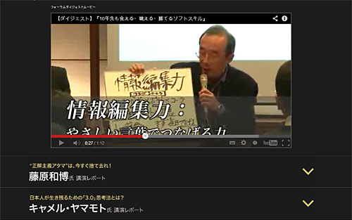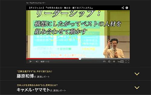 東京都で民間人校長を務めた藤原和博氏と、ビジネス・ブレークスルー大学教授でグローバル人事・組織コンサルティングのプロであるキャメル・ヤマモト氏が出演するトークセッションを収録。両氏が会場を巻き込んで繰り広げるトークを公開する。また、「ソフトスキル」に焦点を当てた授業内容も紹介する。