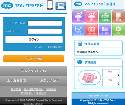 サンテク、スマートフォンで入力できるクラウド家計簿サービス「マム クラウド 家計簿」