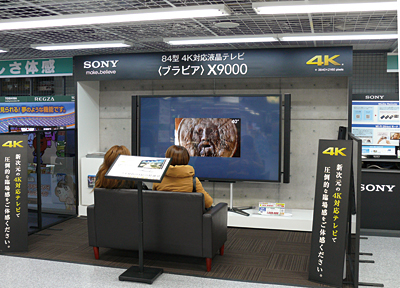 ヤマダ電機LABI広島に設置してある4K対応液晶テレビ。その高精細映像に多くの来店者が関心を示すという