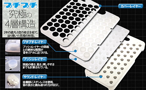 実用性が求められるiPhone用ケース/カバーに「最大限に遊び心を取り入れたい」と開発に着手。荷物を衝撃から守るために巻かれている「プチプチ」の感触と音を再現するため、素材の選定、構造から試行錯誤を繰り返し、2年をかけてようやく完成した。「プチプチ」の再現度が認められ、「プチプチ」の生みの親である川上産業の公認を受けた。