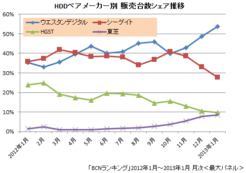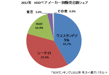 ウエスタンデジタルが2012年HDDベアドライブ市場でNO.1に! 1月にはシェア5割を突破