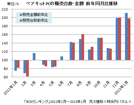 「DC3217IYE」は、発売直後の2012年11月第4週(11月26日~12月2日)の機種別ランキングで1位に食い込み、その後も販売台数を伸ばした。12月と1月の月間機種別ランキングでは2か月連続で首位に立ち、2月に入っても首位をキープしている。