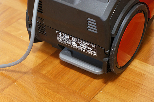 このほか、毎日使ううえで便利なのが、足で踏むだけでコードリールを巻き取ることができる「大型コードリールボタン」だ。コンセントを抜いた後、いちいち屈むことなく、足で踏むだけでコードリールを巻き取ることができる。収納がよりスムーズになる。