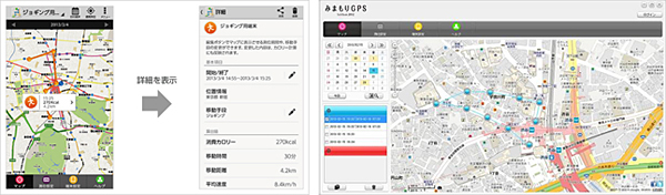移動ルートを記録する機能を搭載。ルート、時間、距離、平均速度、消費カロリーをスマートフォンやPCで確認できるので、ジョギングや旅行などの記録管理に活用できる。
