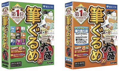 ジャングルは、富士ソフトが開発したハガキ作成ソフト「筆ぐるめ 20」に、追加素材500点とガイドブック『筆ぐるめ便利な活用本』をセットにした「筆ぐるめ 20 大盛」を、3月7日に発売する。価格は、「筆ぐるめ 20 大盛」が4980円、従来バージョンや他社製ハガキ作成ソフトのユーザーを対象にした「筆ぐるめ 20 大盛 アップグレード・乗り換え版」が3380円。