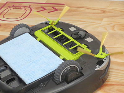 障害物を感知する超音波センサを三つ搭載。障害物を避けて掃除するので、壁やイスの脚などに衝突しにくい。学習機能によって、部屋の形状や家具の配置を記憶するので、2回目以降の掃除では作業効率が向上する。15畳の部屋なら約18分で掃除でき、衝突回数が約63%減少する。