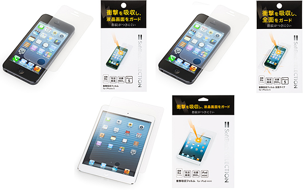 ソフトバンクBB、iPhone 5用とiPad mini用の衝撃吸収フィルムやケース6製品
