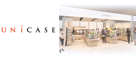 「UNiCASE」のロゴ(左)と店舗イメージ