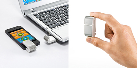 iPhoneが搭載しているジャイロセンサを利用した新感覚のワイヤレスプレゼンター。空中でiPhoneを振ると、その動きに連動してマウスカーソルを操作できる。
