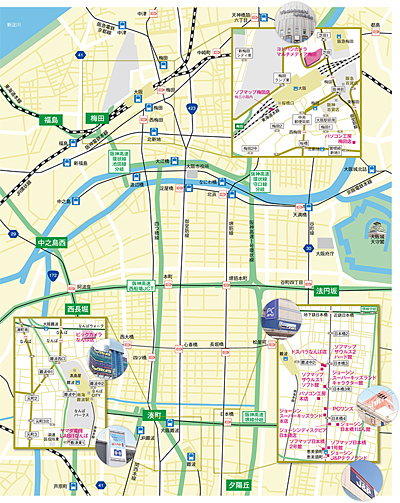 その大阪市の商業地区が、「キタ」と呼ばれるJR大阪駅や梅田駅周辺の一帯と、「ミナミ」と呼ばれる難波駅から心斎橋駅までの一帯。「キタ」はJRや地下鉄の駅のほかに阪急電鉄や阪神電車のターミナルがあり、京都府や滋賀県、兵庫県からも多くの人が入ってくる。阪急百貨店や複合商業施設、オフィスビル、飲食店などが集積している地区だ。「ミナミ」は、JR、南海電鉄、近畿日本鉄道が難波駅をターミナルにしており、和歌山県や奈良県などから訪れる人が多い。駅周辺には、大型ショッピングモールのなんばパークスや大阪タカシマヤなど百貨店、心斎橋周辺にはブランドショップが建ち並ぶ。