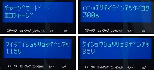 液晶パネルで設定できる項目は、40種類以上。メニューは初期設定などの「セットアップメニュー」、動作に関する設定を行う「コントロールメニュー」、各機能を確認する「テストメニュー」の三つがあり、さらにそれぞれ細かい設定項目に分かれている。かなり細かく設定できるので、よりこだわった設定を行うことができる。UPSを使ったことのある人にはうれしいポイントだ。
