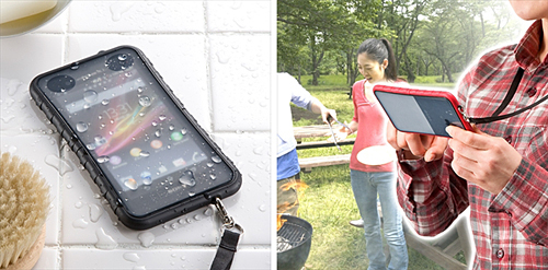 最大幅72×高さ143×奥行き11mm程度のサイズのスマートフォンに対応する防水ケース。IPX7準拠の防水性能で水やホコリの侵入を防ぎ、アウトドアやキッチン、お風呂などの水回りでスマートフォンが使用できる。撮影も可能だが、動画撮影中の音声録音には対応しない。