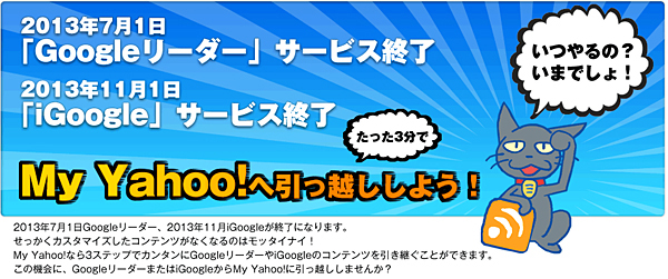 ヤフーの「Googleリーダーお引っ越し」ツール、「Googleリーダー」のRSSデータを「My Yahoo!」に
