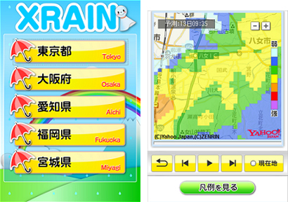 国土交通省が整備を進めている最新式レーダ「XバンドMPレーダネットワーク(XRAIN)」のデータを受信し、日本気象協会が独自に算出した予測雨量データを試験提供する。250mメッシュという詳細な雨量分布が確認でき、近年増加している集中豪雨や局地的豪雨に対する情報源として活用できる。