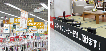 ヤマダ電機LABI1なんばは、「高齢者も来店するので、什器を低くして全体を広く見渡すことができる売り場づくりを心がけた」(築田副店長)という。また、例えばロボットクリーナーのデモは、実際の家庭にあるレイアウトの部屋を仕立てて実施するなど、「ご自宅で使うことをイメージしてもらうことがポイント」という。