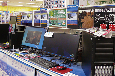 一方、日本橋電気街の「でんでんタウン」はキタとミナミの大型家電量販店に客を奪われたといわれてはいるが、上新電機のデジタル機器専門店、J&Pテクノランドでは、パソコンを主力商材に、「他店とは違う目線で店づくりをすることで、お得意様の確保に成功している」と、川井彰店長は自信をみせる。売り場面積は3500m2と大型家電量販店に比べて小さめだが、「デジタル機器の専門店のなかでは大型店舗に位置づけられる。ごちゃごちゃと商品を展示するという専門店らしい売り場ではなく、お得意様がゆっくりと商品を選ぶことができる売り場づくりを心がけている」という。