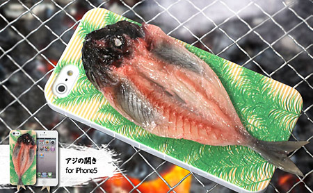 「食品サンプルカバー(アジの開き)」は、ポリカーボネート製のiPhone 5専用ケースの上に、本物そっくりでリアルな「アジの開き」を乗せた。サイズは約縦14.0×横6.1×厚1.0cm。価格は3990円。