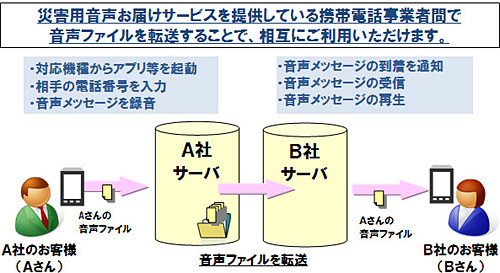 電気通信事業者協会(TCA)の会員であるNTTドコモ、KDDI、沖縄セルラー電話、ソフトバンクモバイルは、「災害用音声お届けサービス」の相互利用を4月1日に開始する。