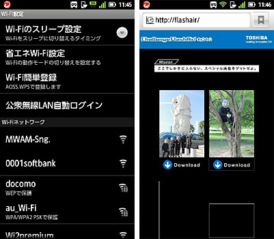「FlashAir」は、IEEE802.11b/g/nの無線LAN規格に対応し、「FlashAir」をセットしたデジタルカメラで撮影した画像をスマートフォンやタブレットにワイヤレスで転送できるSDHCメモリカード。アプリは現在Android版が提供されているが、今春にはiOS版が提供される予定だ。