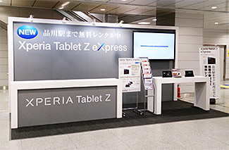 「Xperia Tablet Z eXpress」では、JR品川駅と新大阪駅に特別ブースを設置し、あらかじめ動画や電子書籍、音楽コンテンツを収録した「Xperia Tablet Z」を無料で貸し出す。実施場所はJR品川駅の新幹線北のりかえ口改札外と、JR新大阪駅新幹線中央口改札内。キャンペーン実施期間は3月26日~4月8日の10:00~16:00で、返却は貸出し当日19:00まで。