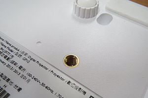 入力端子のほか、「GP10」の底部には市販のカメラ用三脚が取りけられるネジ穴がある
