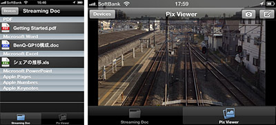 文書ファイルは、「Office 2003」以降のWordやExcel、PowerPoint、「Apple iWork '09」以降のPages、Numbers、Keynote、PDFファイルに対応。画像はJPEGとPNG形式のファイルが表示できる